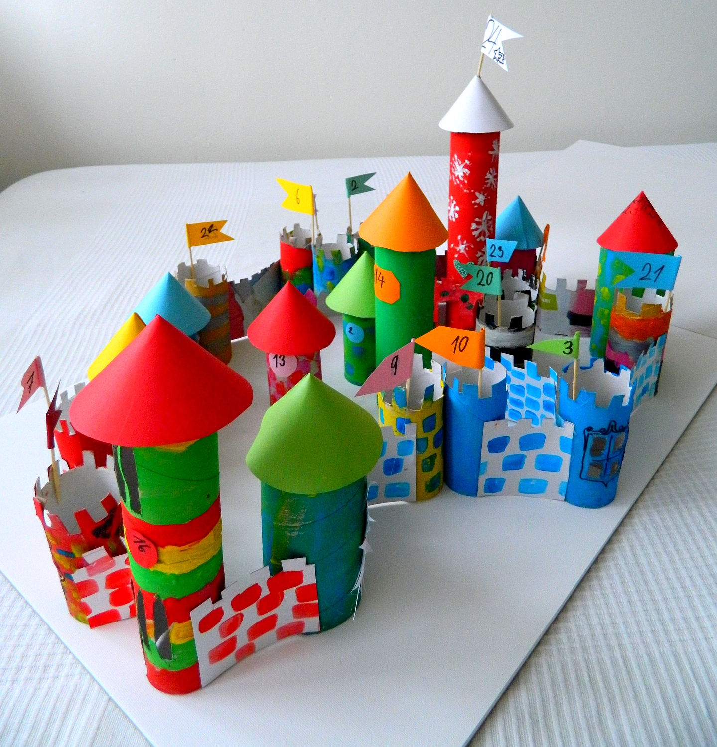 Коледен календар - замък от празни ролки от тоалетна хартия