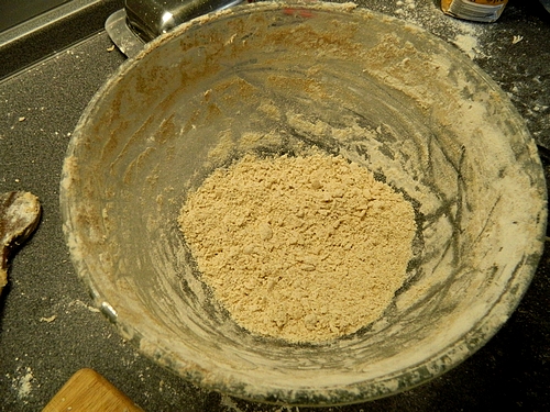За да е по-тъмно тестото смилям шепа ленено семе, шепа сусамено и малко чиа семенце.