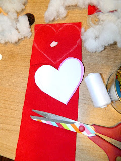 На двоен плат очертахме шаблонът и изрязахме сърца.